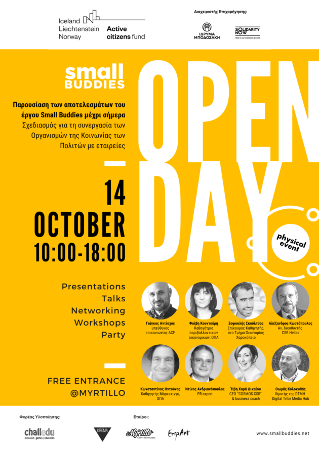 Το δίκτυο Small Buddies σας προσκαλεί την Παρασκευή 14 Οκτωβρίου, 10:00-18:00 στο Small Buddies Open day!